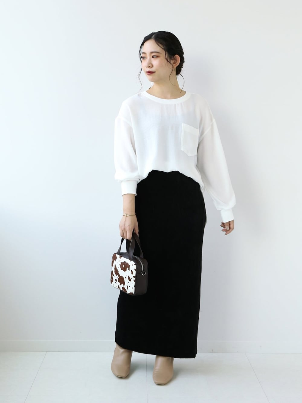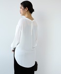 中間の季節に程よく着られる、軽いカットソー。ほんのり透けるくらいの透け感で、エアリーな着心地。素材は滑らかなブラウスのような、するん、とした素材感です。ポリエステル100%のシワになりにくい素材感なので、レイヤードコーデにも向いている一着。もう少し涼しくなったらスウェットやニットにレイヤードして楽しみたいです◎