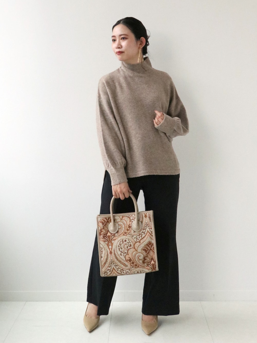 さりげなくMIX地のようになっている生地感が可愛い、タートルニット。 定番のブラウンは、濃すぎず薄すぎずの絶妙なカラーリングなので秋のワードローブにあると着回し力を高く発揮してくれそう。 サイドにラウンドデザインのスリットが入っていて、そのままアウトで着るだけでもデザイン性が映える一枚です。もちもちの素材感は、着ていて着心地の良い素材感♩