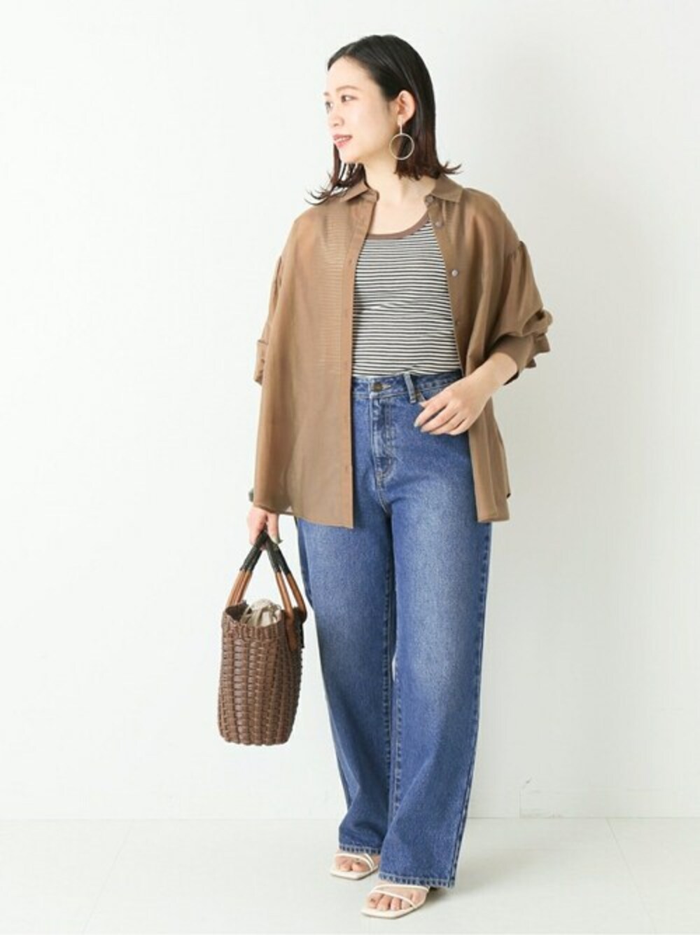程よいシアー感が、活躍する季節。 春先に向けて、軽やかなアイテムが気になる今日この頃。透けつつ、透け過ぎない程よいシアー感は大人の着やすい透けアイテムに。気温に合わせて中に着るものを変えて、ロングシーズン着られる一着です。まだ肌寒い時期はロンTやタートルネックも可愛いですし、気温が上がったらTシャツやタンクトップを合わせるのもオススメ。夏に着たくなるノースリーブにも、サラッと羽織りで合わせるのも◎これからの季節に向けて、コーデが楽しくなりそうなシアーシャツです・・♩ 【コットンシルクシアーシャツ】 ----- 着心地 ----- サラッと軽い着心地で、程よい透け感がある素材です。タンクトップなどを透けさせても露出しすぎないくらいの透け感なので、大人の着やすいシアー素材だと思います。 ----- サイズ感 ----- ゆとりのあるサイズ感で、余裕をもって着られました。私の身長で、後ろの裾はヒップを隠すくらいの丈感があります。前後差があり軽い素材感なので、重たく見えずに体型カバーにも役立ってくれそうです。 【Natural Friendly Denim バギーパンツ】 ----- 着心地 ----- 硬すぎず柔らかすぎず、程よいハリ感があります。だぶっとしたバギーのシルエットがキレイに出ます。動きやすく、硬すぎないので屈伸もしやすかったです。デニムですが、使い込んで馴染ませる間もなく、既に着心地の良いアイテムでした。 ----- サイズ感 ----- Mサイズを着用、腰回りは程よく少しゆとりあり、丈は少し長めでした。フラットシューズだと床を擦ってしまいましたが、ヒールのパンプスを一緒に着用した時、床を擦らないくらいの丈感でしたが、ベーシックなデニムで何にでも合わせたいので、私の身長体型ではSサイズが良さそうでした◎ *** 着用スタッフ情報 *** 身長:153cm 体型:普通 肌:ブルべ/冬 骨格:ウェーブ 普段サイズ:S~M(36~38) 着用サイズ:パンツ/Mサイズ、その他全て/フリー