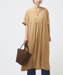 二の腕を隠しつつ、軽やかに。 隠したいところを隠しつつも、重たく見えない春ワンピ。 前がやや上がっており、後が少し長めです。低身長ですが、くるぶし丈くらいで着られました◎シワになりにくいスルッとした素材感で、シアー感があり、軽い素材感のプリーツワンピースです。動くたびに揺れるレディライクな雰囲気があり、デニムなどカジュアルなアイテムとも相性が良いです。今回は、一着でシンプルに着てみました。ヒール高6cmのサンダルで合わせています◎ 【ブザムバックプリーツワンピース】 ----- 着心地 ----- 軽い素材感なので、春夏にぴったりな着心地。ペチコートと一緒に着るとインナーの透け感は気になりません。あえてボトムスを透けさせてレイヤードコーデにするのも◎ ----- サイズ感 ----- ゆとりのあるサイズ感ですが、タックもあり縦にドレープが入るので、スッキリ見せてくれるようなデザイン。バックスタイルもプリーツデザインがあるので、余裕があっても着膨れしにくいです。 *** 着用スタッフ情報 *** 身長:153cm 体型:普通 肌:ブルべ/冬 骨格:ウェーブ 普段サイズ:S~M(36~38) 着用サイズ:全て/フリーサイズ