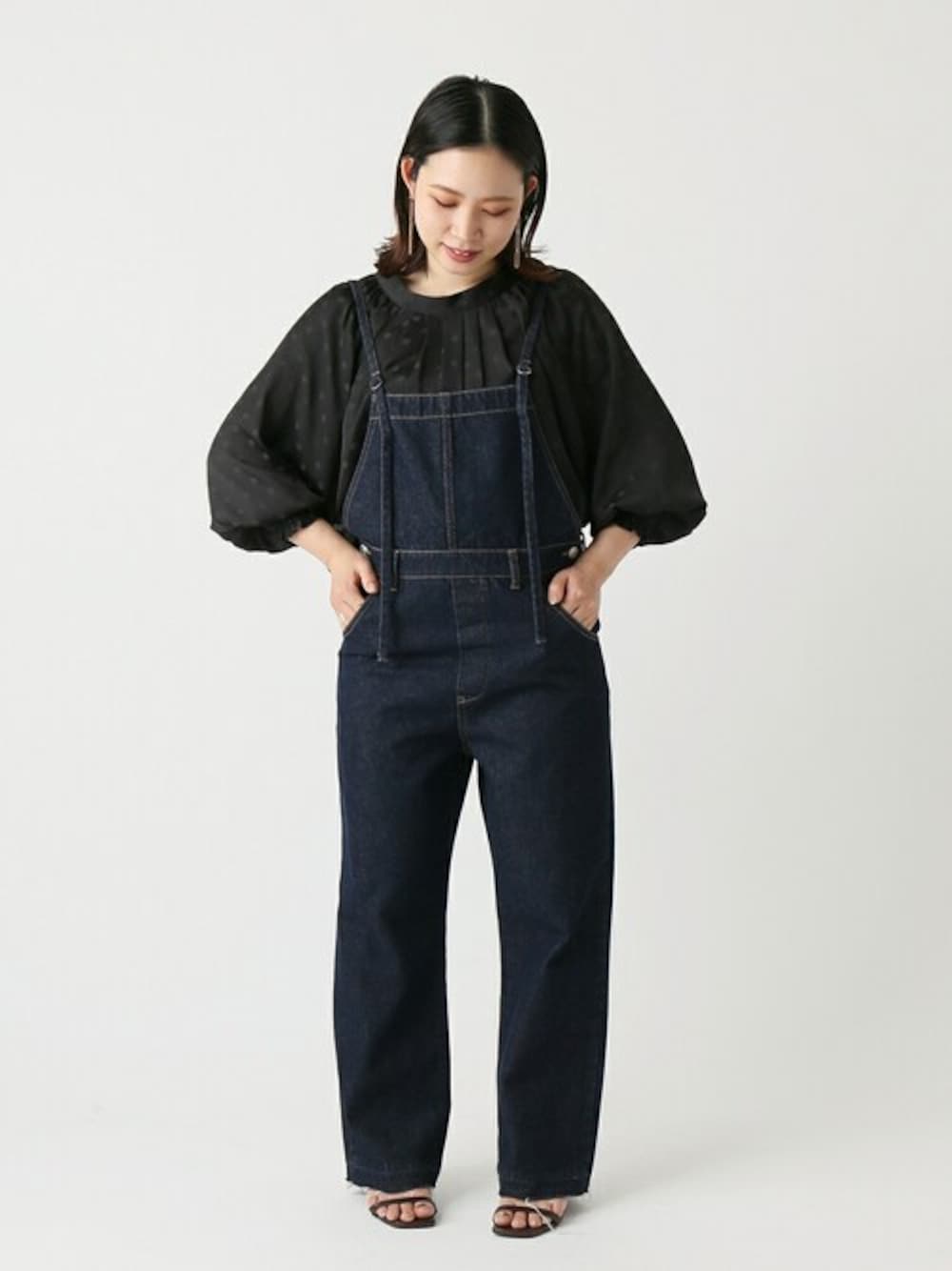 品よく着られる、キレイめカジュアル。 するん、としたサテンの素材感は肌心地良く、体型も拾いにくいゆるめのシルエットなので、とっても着やすい一着でした◎袖元のシャーリングがポイントで、たくしあげると袖にボリュームが出来るのが可愛いです。首の詰まっているネックデザインが苦手なので、首まわりの開き具合を、後ろのボタンで調節が可能なのは嬉しいところでした◎着心地も抜群なうえに、さりげなく品の良さをプラス出来るキレイめブラウスは、カジュアルなデニムにも相性が良いので、何かと着回し力高く活躍してくれそうです・・♩ 【ドットシャーリングブラウス】 ----- 着心地 ----- 軽い着心地で、品のある艶感がキレイな素材感です。 薄手の素材なので、インしてもボリュームが出ずに着られます。 ----- サイズ感 ----- 身幅、腕まわりにも余裕のあるサイズ感。丈はヒップにかかるくらいの長すぎない丈感でした。 【 Natural Friendly Denim オーバーオール 】 ----- 着心地 ----- 硬すぎず柔らかすぎず、動きやすいデニムの素材感です。程よくゆとりがあったのでラインも気になりにくく、屈伸もしやすくて動きやすい着心地でした。 ----- サイズ感 ----- 肩のストラップで調節がきくので、程よい丈感で着こなせるサイズ感でした◎ *** 着用スタッフ情報 *** 身長:153cm 体型:普通 肌:ブルべ/冬 骨格:ウェーブ 普段サイズ:S~M(36~38) 着用サイズ:全て/フリーサイズ