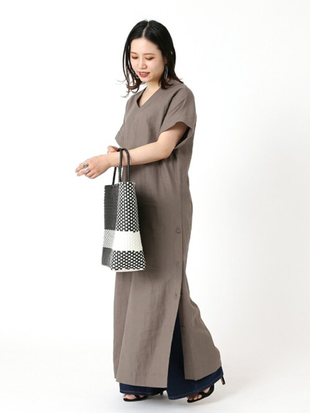25度~夏まで着られるワンピ すっきりとしたIラインがキレイなワンピース。私の身長ではやや長めでしたが、細見えさせてくれるシルエットがなんともお気に入りです。ヒールのあるサンダルで合わせれば問題なく、また華奢見えさせてくれるサンダルとも相性が良いので大人っぽく着られる一着です。ボタンを開ければサイドスリットとしてレイヤードコーデにもオススメ。今回は3つ開けて、スリットを深く開けてみました。ボタンは全部で4つありますが、一番上のボタンはその下に縫い目があるので、開けてもスリットは深くなりません◎ 【サイドスリット麻レーヨンサックワンピース】 ----- 着心地 ----- 麻×レーヨンの素材が、春夏にぴったりなドライな着心地。 ----- サイズ感 ----- 私の身長では、やや長めでした。ヒールのあるサンダルなどで合わせれば◎ *** 着用スタッフ情報 *** 身長:153cm 体型:普通 肌:ブルべ/冬 骨格:ウェーブ 普段サイズ:S~M(36~38) 着用サイズ:ワンピース/フリー、パンツ/M