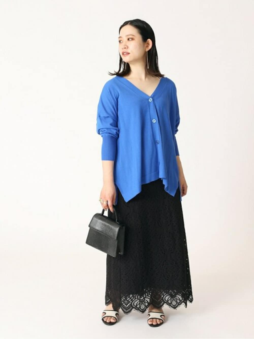 トップスにも羽織にも、ちょうど良い。 これからの季節に大活躍してくれる、薄手のニットカーデニットカーデ。サラッとした軽い着心地で、やや透け感のある通気性の良い素材感。トップスとしては勿論、軽い羽織にも最適◎夏のUV対策や冷房対策にもオススメです。キレイめにもカジュアルにも着まわしやすい、シンプルなデザインは着こなしの幅を広げてくれそうです・・♩ 【ハイツイストコットン ポンチョVカーディガン】 ----- 着心地 ----- 動きやすく、着心地が良いです。薄手なので、春夏に合わせやすい一着です。 ----- サイズ感 ----- ゆるっと着られる余裕のあるサイズ感です。 【レース ナロースカート】 ----- 着心地 ----- Iラインですが、裾にやや広がりがあるので足さばきしやすく、動きやすい着心地です。 ----- サイズ感 ----- Mサイズを着用し、ウエストにやや余裕があるものの丈が長すぎず程よく履けました。私の体型でジャストサイズはSですが、余裕を持って着るならMでも大丈夫そうでした◎ *** 着用スタッフ情報 *** 身長:153cm 体型:普通 肌:ブルべ/冬 骨格:ウェーブ 普段サイズ:S~M(36~38) 着用サイズ:スカート/M、その他全て/フリー Instagram:_asako108_