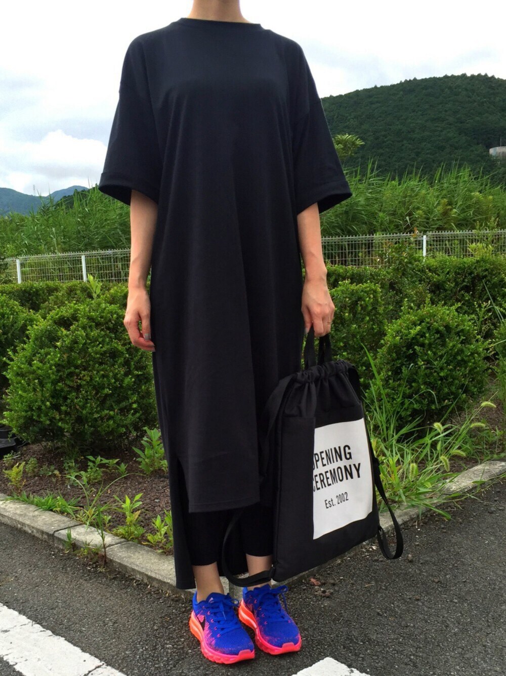 今日は、真っ黒クロスケ❤︎ エンフォルドのワンピースは、肌触りもよく、着心地抜群!ピタピタパンツと合わせて。
