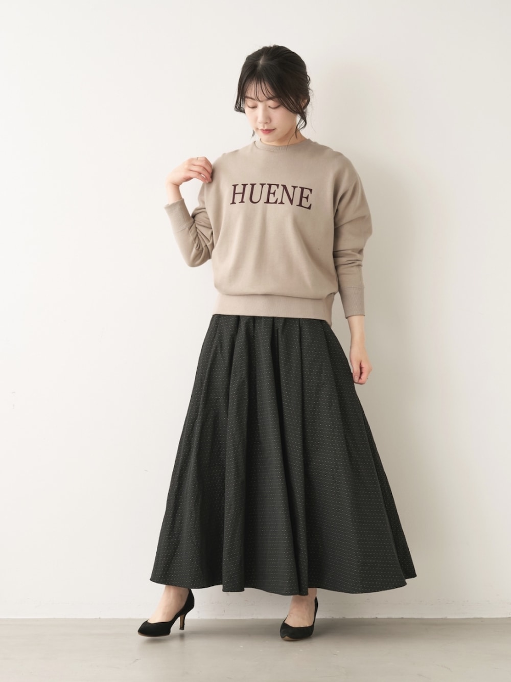 コンパクトなスウェットにはフレアスカートも相性抜群◎inしなくても裾リブで自然に止まるので、バランスも取りやすいです✨