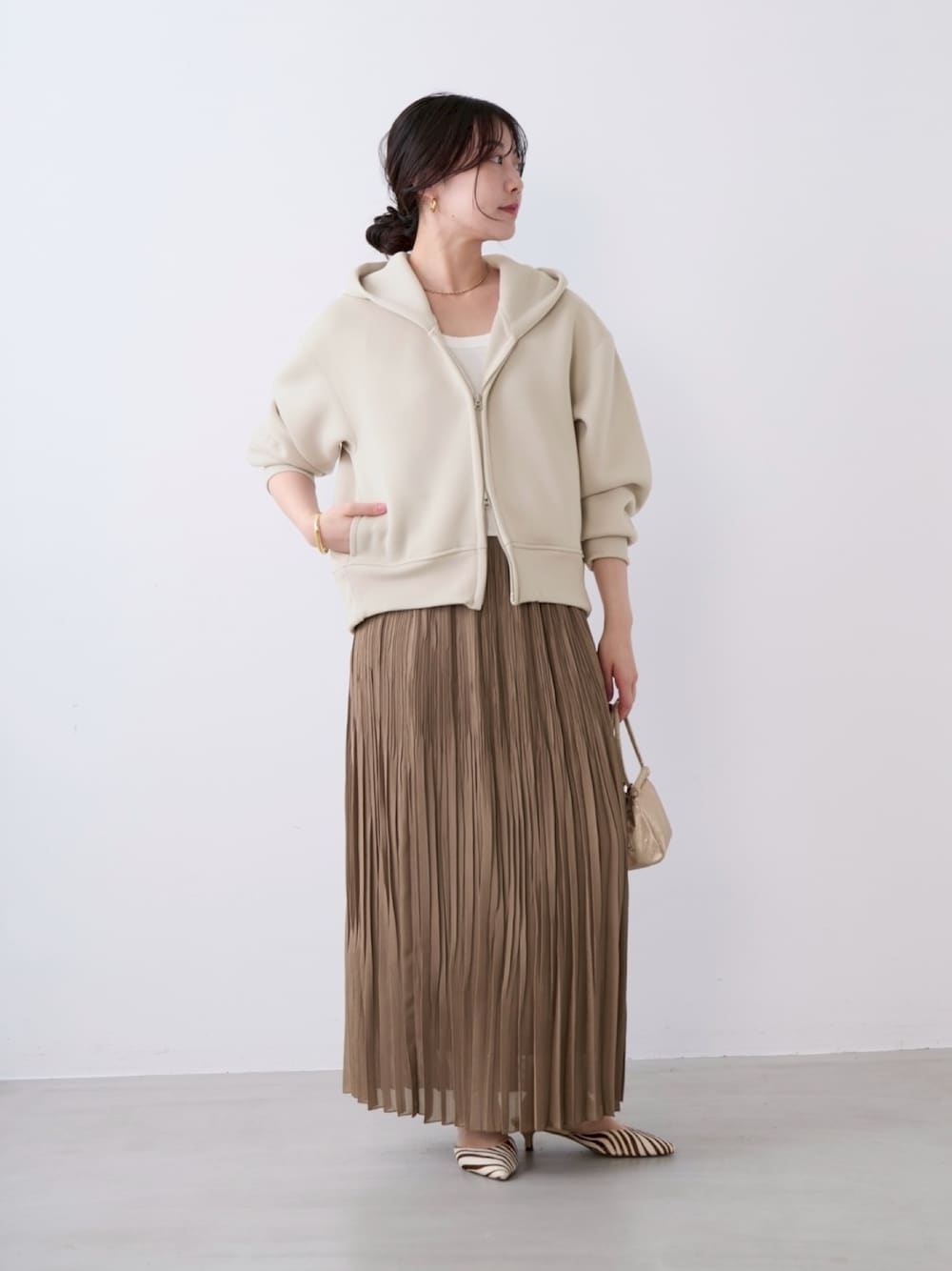 大人気のAMERICANAよりロゴフーディをセレクト!プリーツスカートでフェミニンなコーデに✨ . トップス:AMERICANA スカート:MICA&DEAL