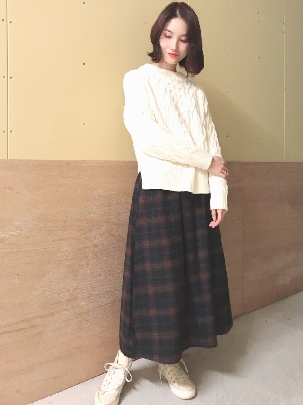 寒くなるとケーブルニットが 大活躍〜🐰⭐️ 最近コンバースはハイカットが好き🙄💛