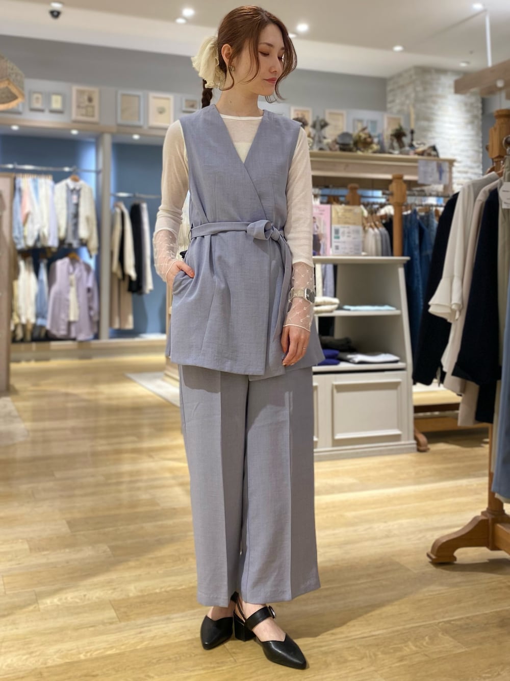 mizukiのベスト「リネンライクジレ」を使ったコーディネート