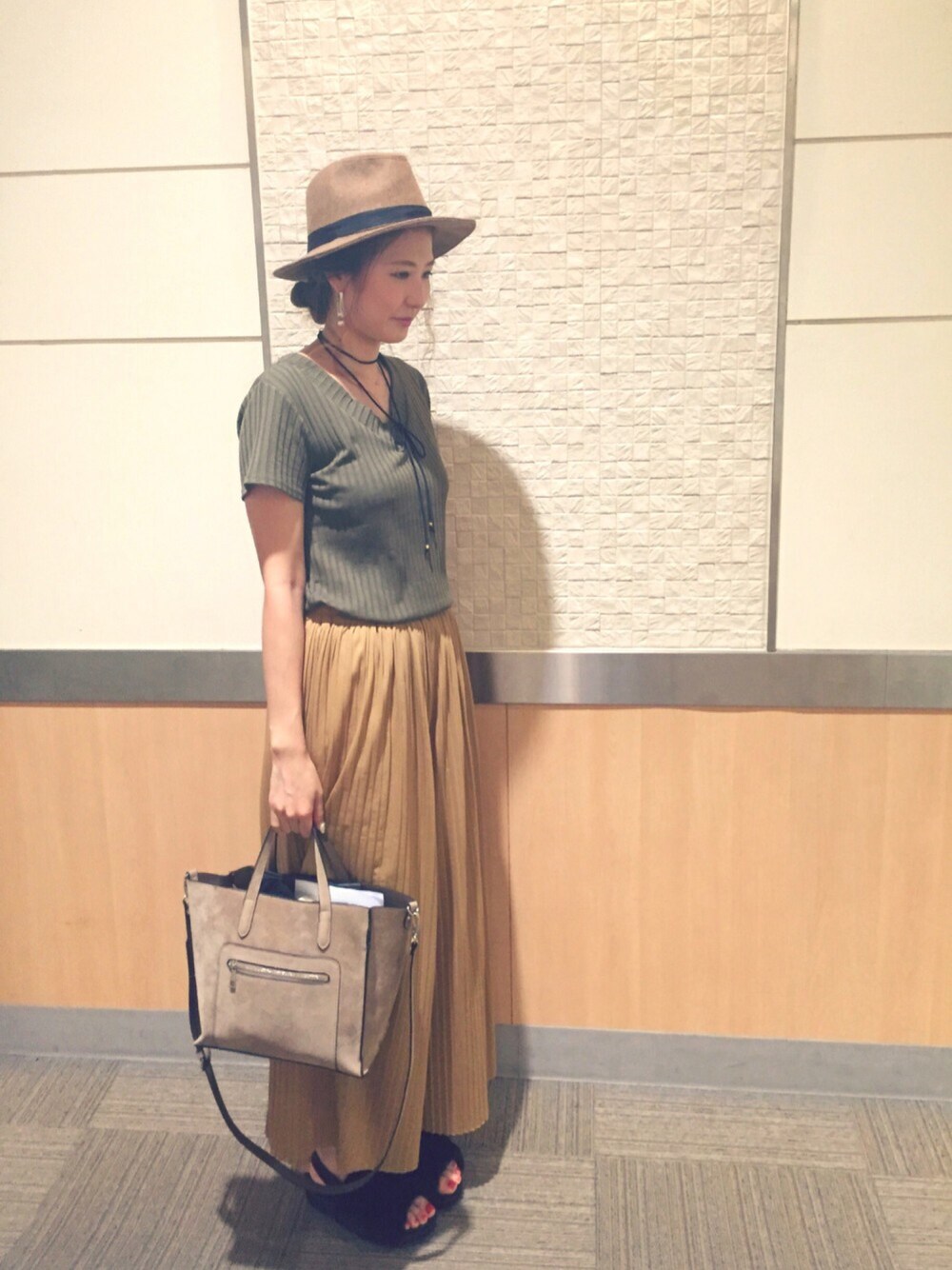 今日の出勤コーデ☺️ ドレスコードはプリーツ×秋色でした👠💄🍁