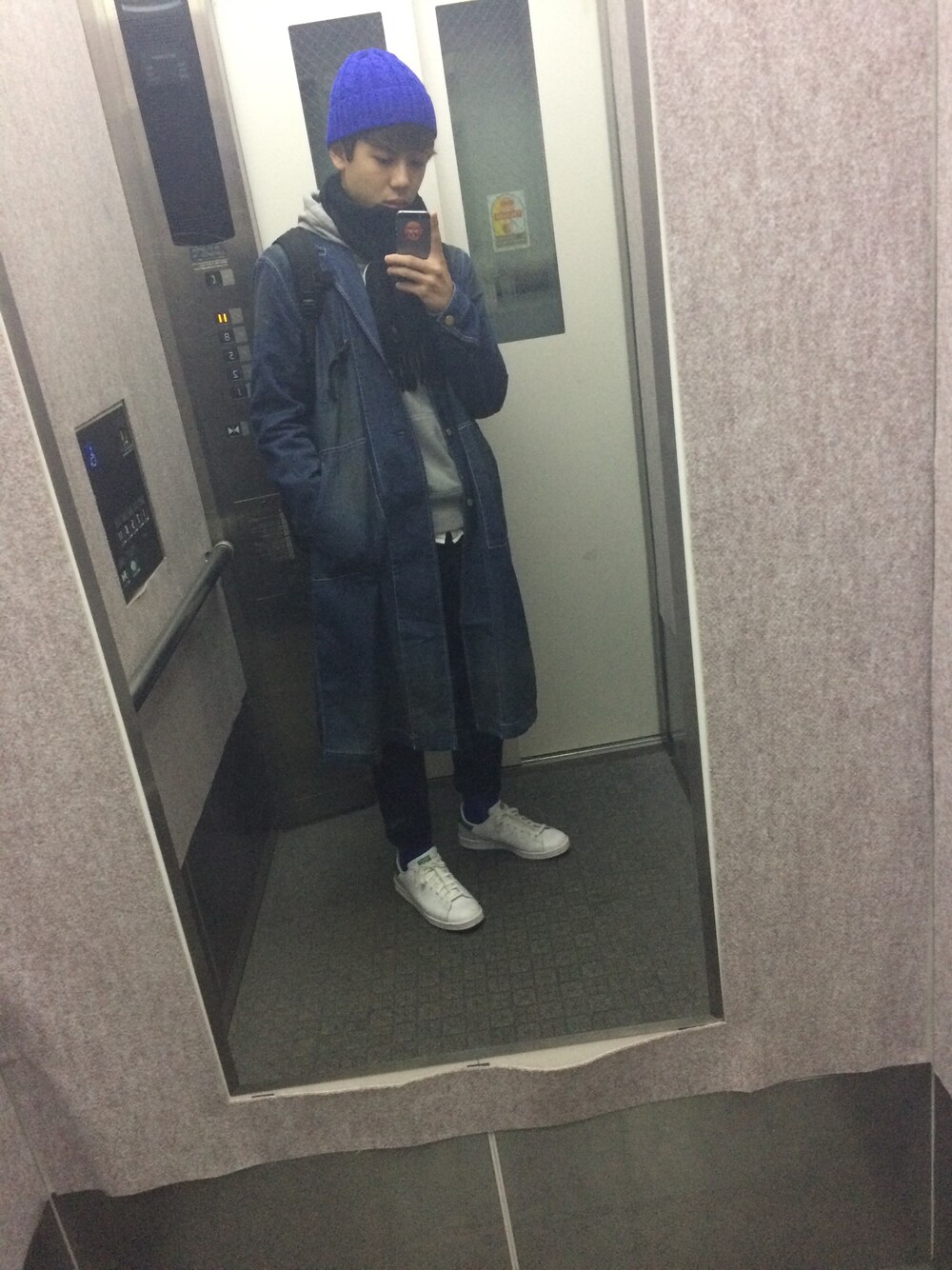 お気に入りのデニム地のロングコートです(^ ^) ロングコート自体は春先でも使えるような薄手なので中を着込んでいます(^ ^)