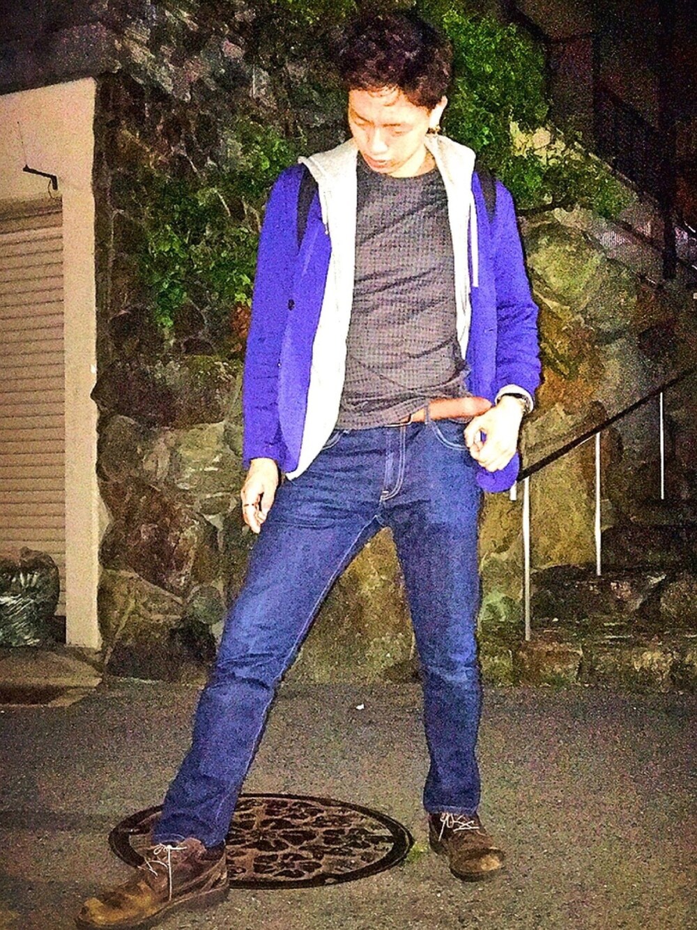 テーラードジャケットに パーカーの重ね着 UNIQLO Tシャツのデザインが好き^_^🙃