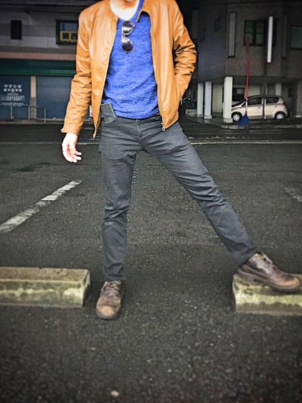 革ジャンで合わせた アメカジ風大人コーデ! 下はブーツとスキニーパンツで!