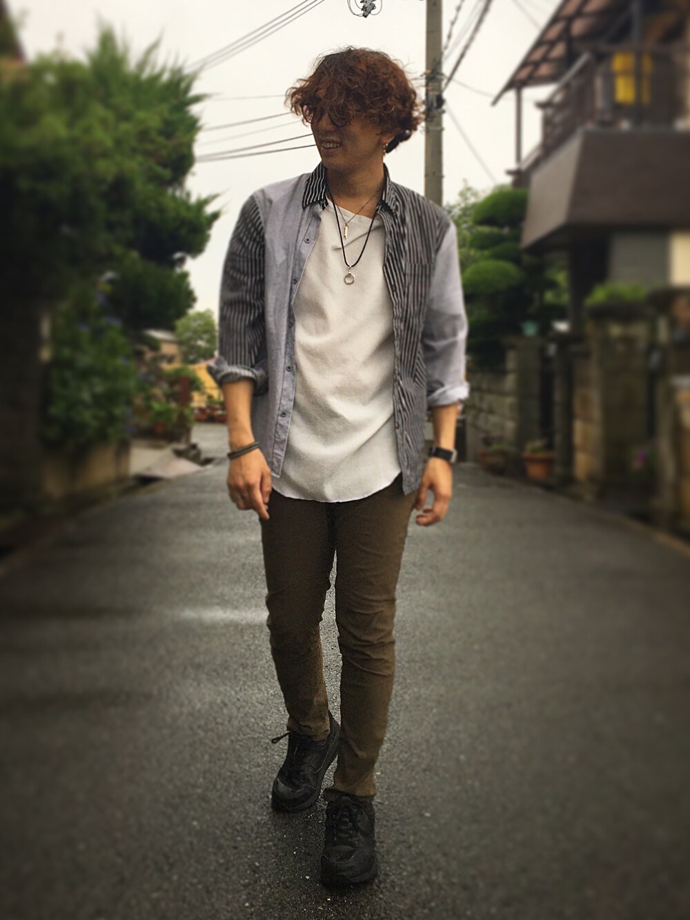 デザイナーとして斬新なデザインの 切替ストライプSHに 一目惚れしました😊 カーキのパンツとの合わせ方が 相性良きです✨ 久々に細身シルエットの コーデしました🤣