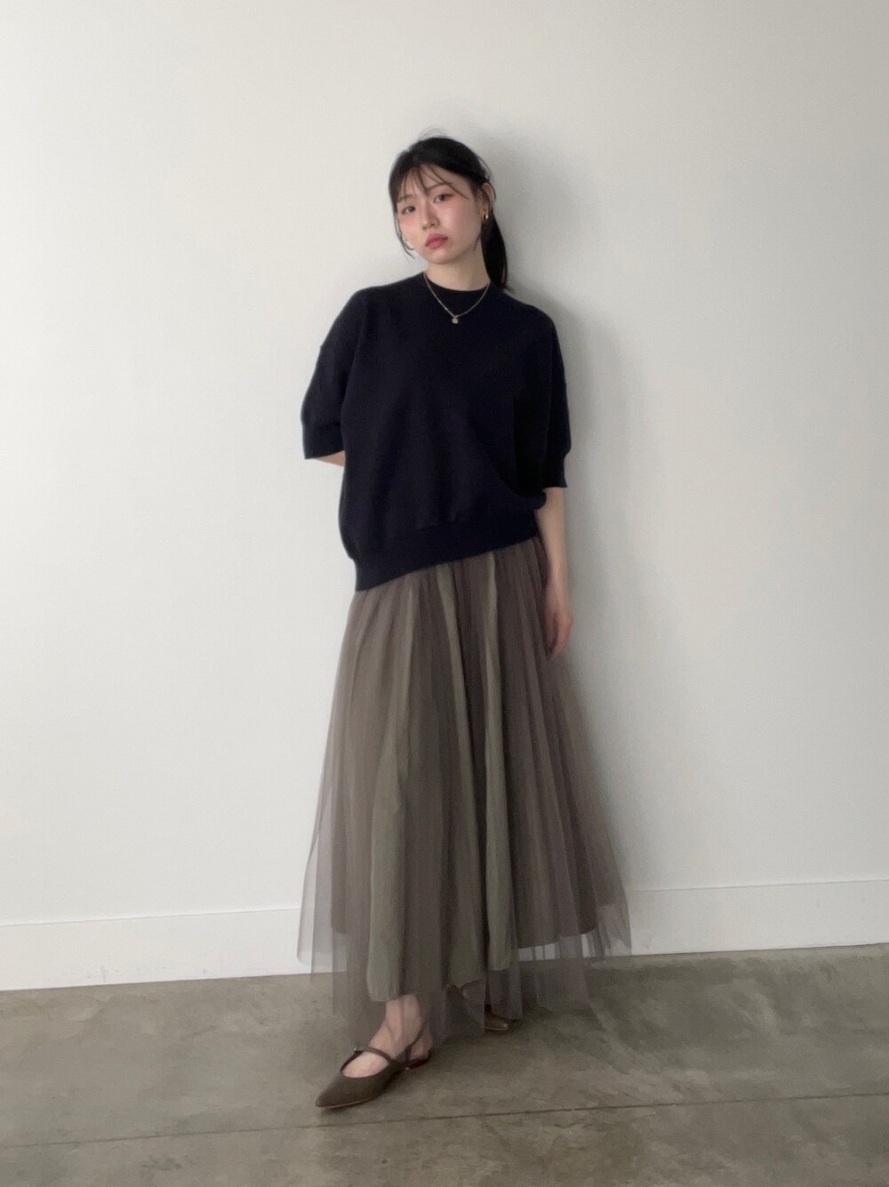 春素材をダークトーンでおしゃれに。 チュールスカートはリバーシブルでお使いいただけます♡ Instagram @say._md 158cm
