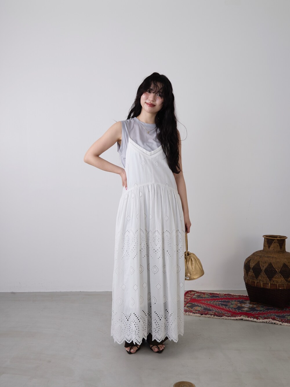 SAY.(MICA&DEAL)のワンピース「インド綿カットワークキャミドレス」を使ったコーディネート