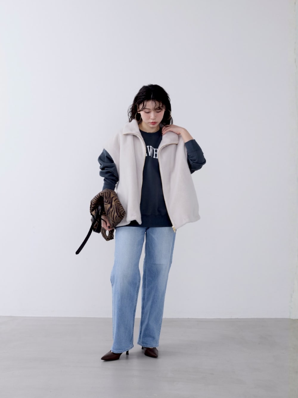 ロゴの色に合わせてホワイトのファーを。 MICA&DEAL say. 158cm insta/WEAR @say._mdr