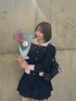 ボリュームのあるスカートを合わせてメリハリを出すとスタイルが良き見える♫
