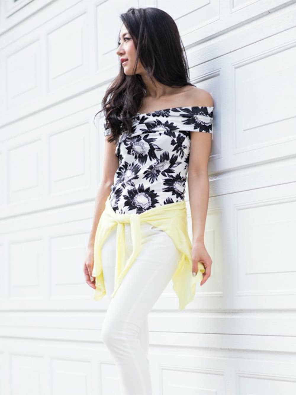 オフショル+白パン+腰巻きカーデで初夏を演出♪ちょい大人コーデも実はプチプラなんです