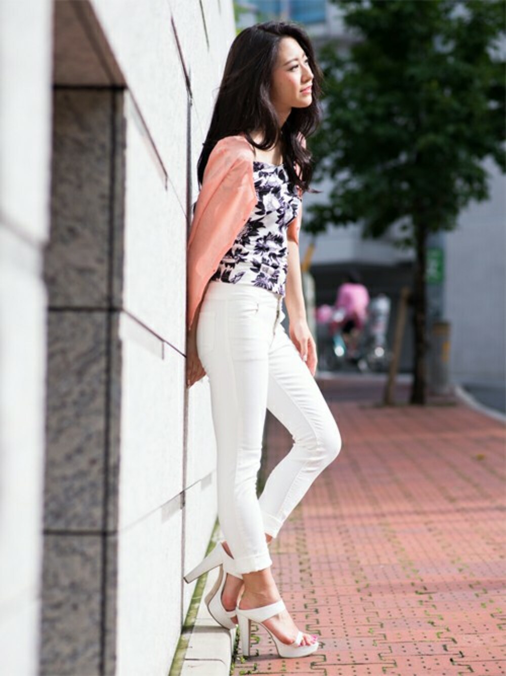 SHIMのTシャツ/カットソー「単色ひまわりプリント変形オフショル」を使ったコーディネート