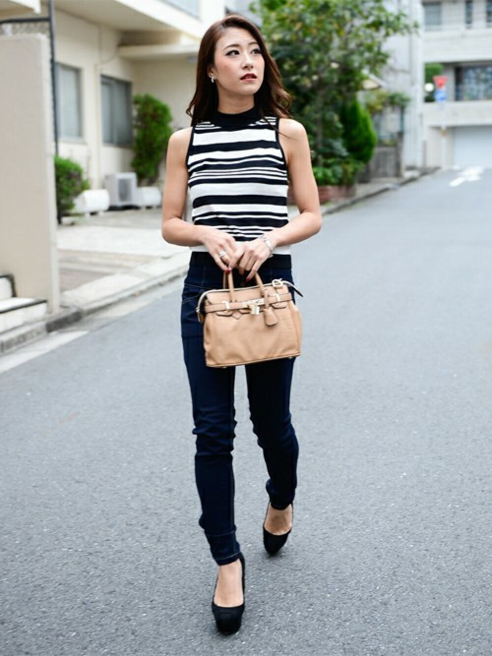 結構【腕筋】がイイ感じですな。。。 あ、仕事仕事 ハイネックノースリニットってこの時期にしか着れない特別アイテムでしょ 本音はカーデをプラスすれば完璧だったんですが(T_T) ハイウエストのスキニーパンツとの相性がイイんです ヒザ丈のフレアスカートも間違いないですな♪ 実は今季のミージェーンではハイネックノースリ推してます!!!