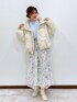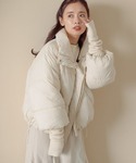 冬のカジュアルフェミニンコーデ 中綿ブルゾンはとても軽くコンパクトなボリュームなので着膨れ感が出ず、すっきり着られます! 小柄な方にも着られている感がでないので挑戦しやすいですよ。 着用のエクリュ色は真っ白ではなく、やや黄味がかったお色でナチュラルテイストなコーディネートに溶け込みやすいです。 微光沢で上品に見えるので、大人の方でも取り入れやすいです。 ハイネックニットのブルーを差し色にブルゾン合わせでも 綺麗め見えする冬のオススメコーデです。