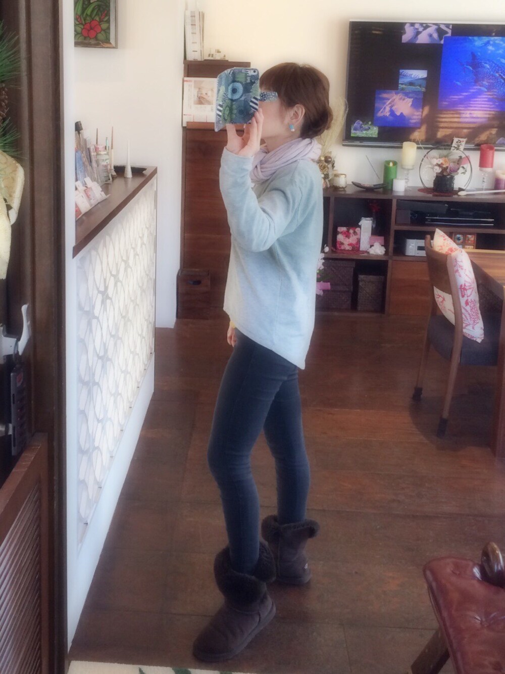 スウェットの下に差し色 ちょっと加える色がすき♬
