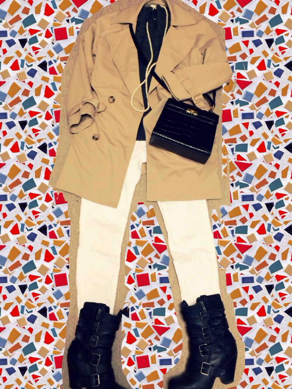 プチプラコーデ♡ トレンチコート。。不明 ニット。。UNIQLO パンツ。。UNIQLO ブーツ。。Ginnete バッグ。。お母さんのお下がり