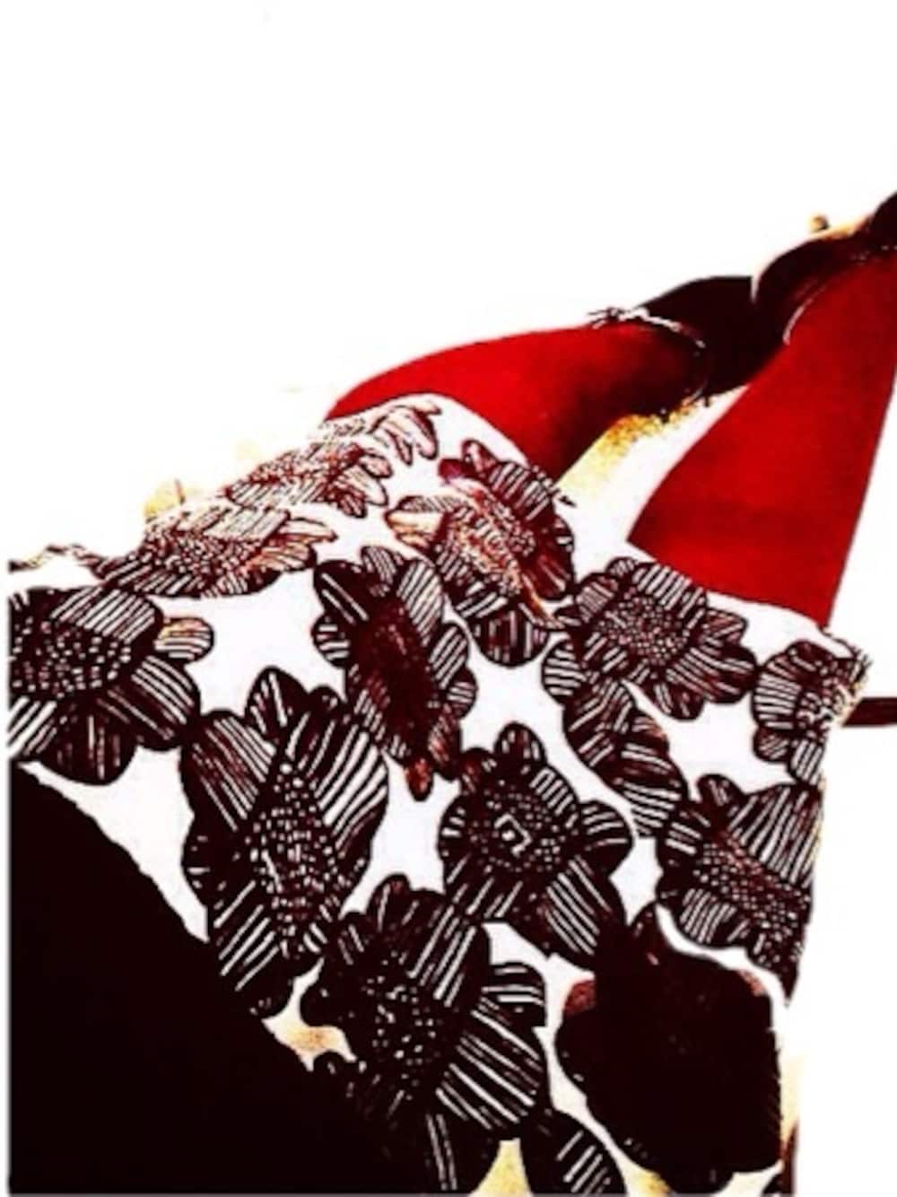 マリメッコのワンピースにUNIQLOセーターと赤タイツとブーティ