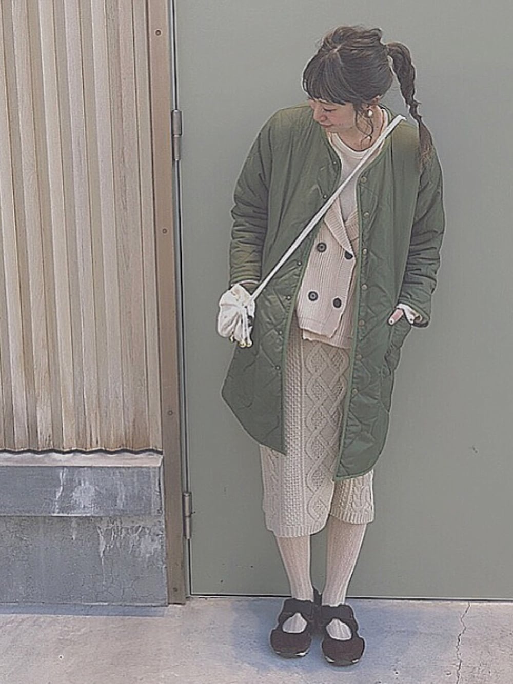 white knit × skirt ☃️❄️❄️❄️ あったかキルティングコート🎄