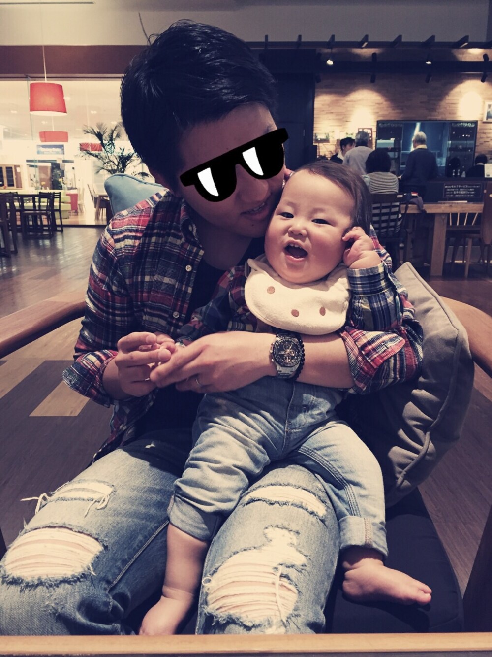 日曜日に動物園デビューしました! と言っても息子は全く興味なし(>_<) でも、楽しかったよね⁈笑 帰りに東京インテリアの中にあるカフェでパシャリ♡♡ パパに抱っこされてご機嫌さんです(*^^*)