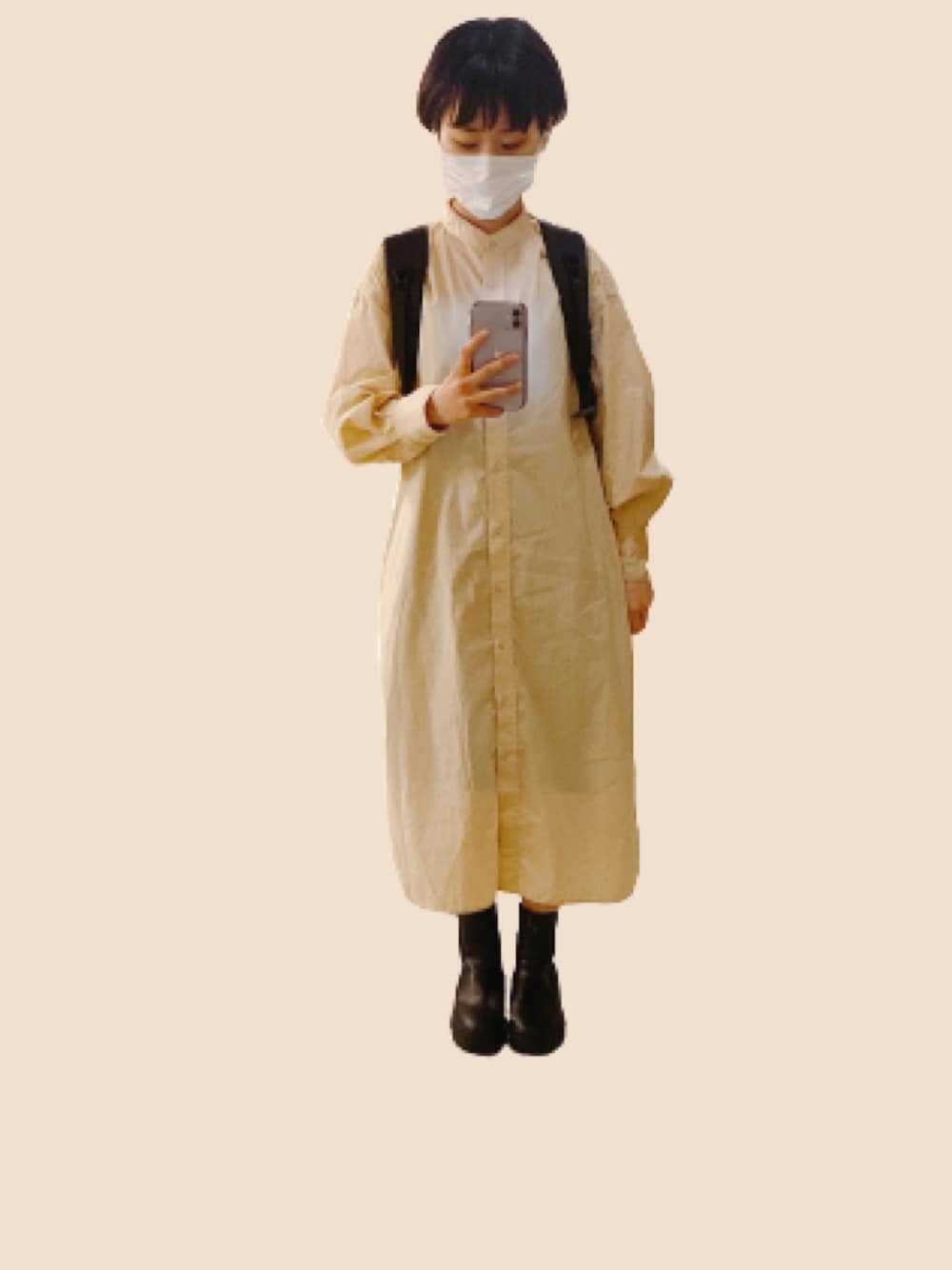 形も色もちょっと古着っぽくて お気に入りのシャツワンピース! ブーツはさすがに暑かったですが バランスはすきです。
