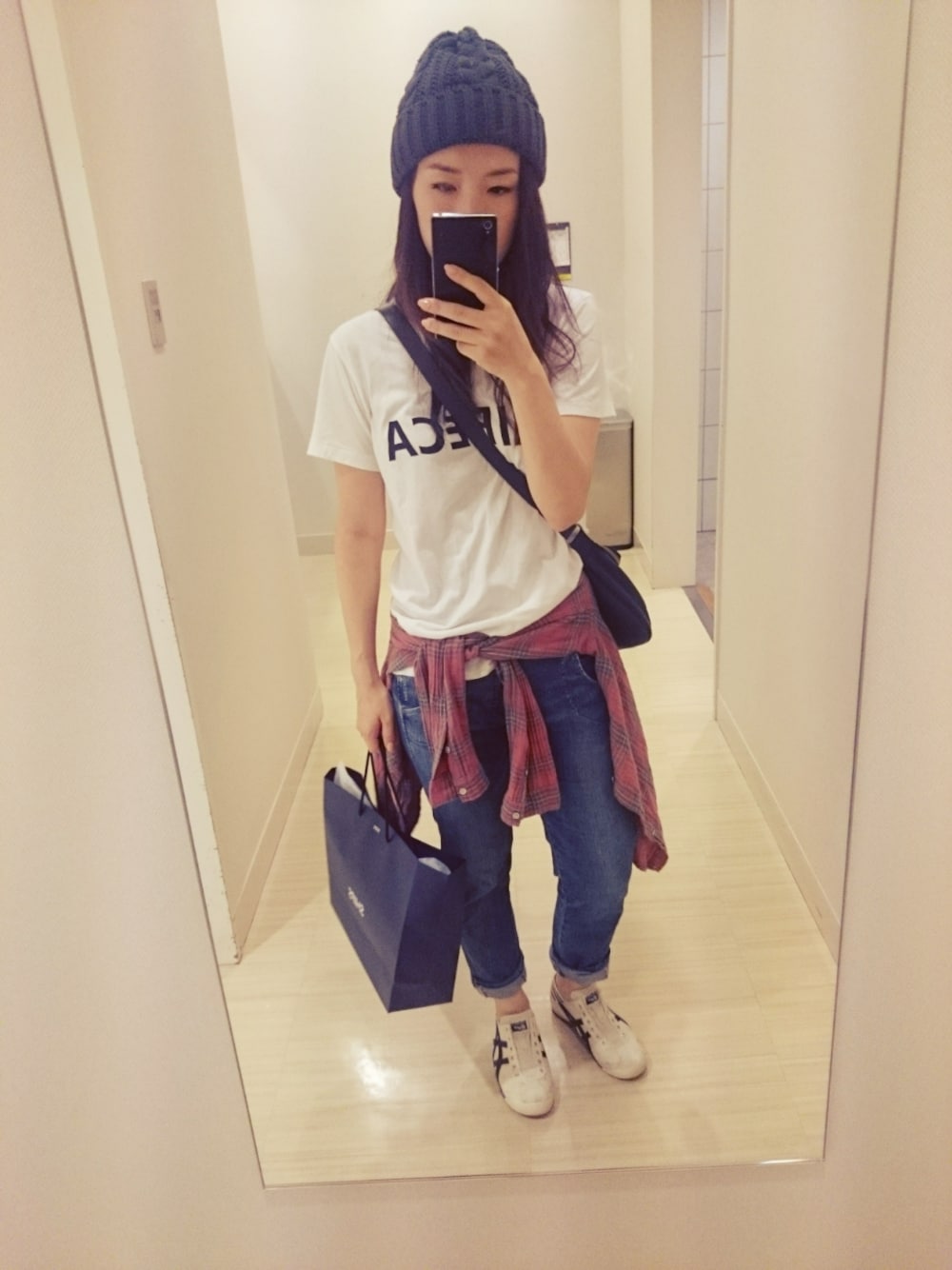 このニット帽かぶれるくらいの季節になってきて うれしー! 欲しかったクラッチバッグget!!!☆ デニム*quadro シャツ*quadro バック*quadro 帽子*CA4LA