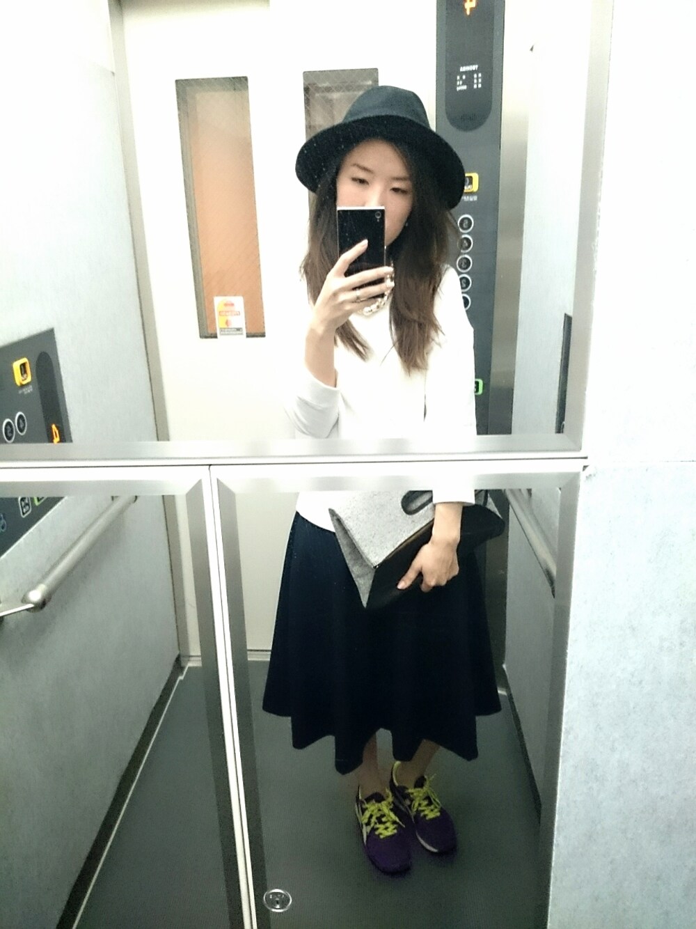 白が飛んじゃう‥笑 白のスウェット、 絶対見えないけど、薄焼けた色でロゴが書いてあります♪ 自撮りだとネックレス見えませーん。。 トップス*URBAN RESEARCH スカート*ZARA