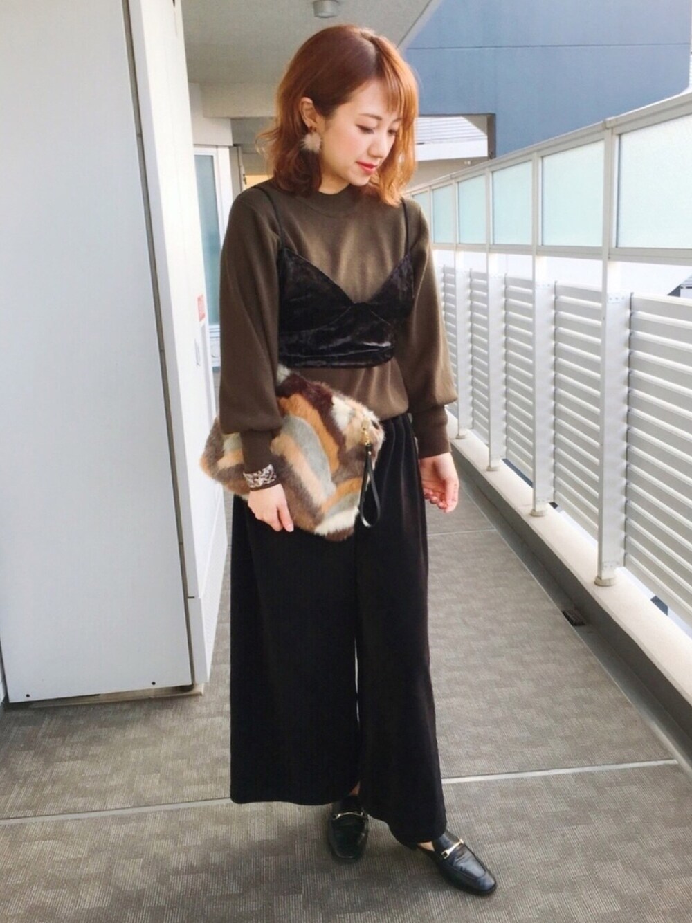 ご覧いただきありがとうございます😊 今日は、ちょっと大人カラー✨ SENSE OF PLACEさんの セーターの着まわしコーデです♡〃 ビスチェとパンツは、黒のベロアで 揃えてみました☺️💕 シンプルなトップスなので 小物で色々遊べます🌈
