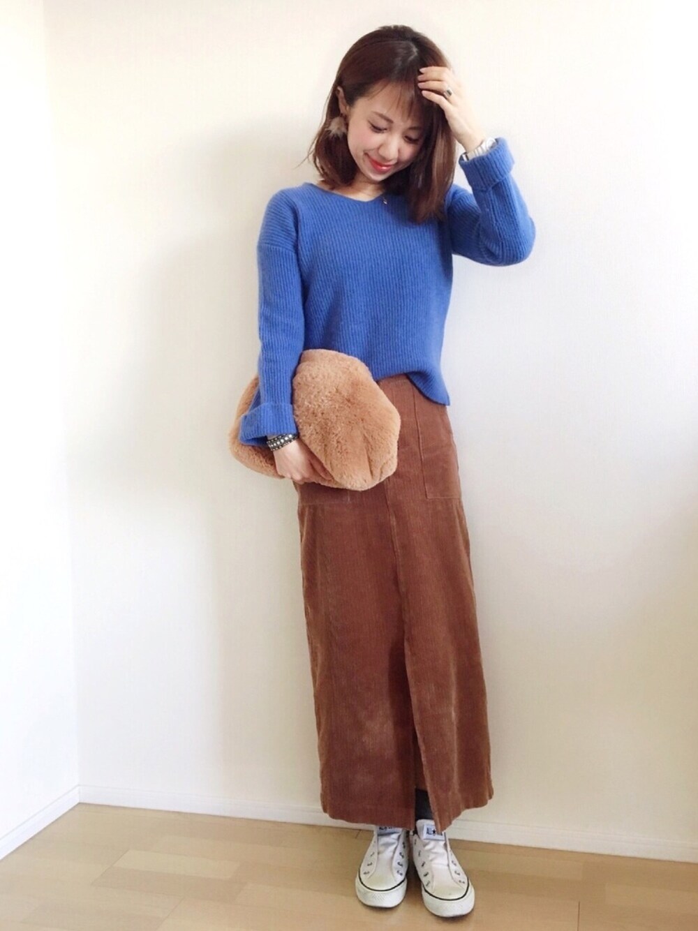 ご覧いただきありがとうございます😊 今日は、お家でのんびり過ごしました🏠 ブルーのニットがお気に入りすぎて 出番多め🙊💕 ブルー × ブラウン♡♡♡ 今日はこれから お家でチーズダッカルビします🧀🍖 食べすぎ🐷💨〃