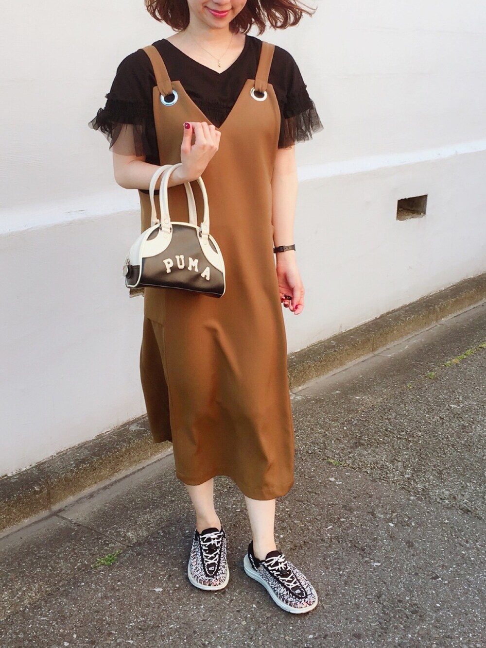 チュールTシャツ × ワンピ💓 PUMAの小さなバッグは 若い頃使ってたやつ🙊♬