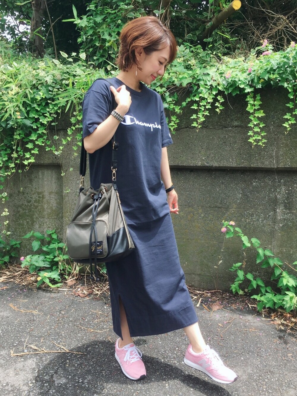 memeのワンピース「[WEB限定][別注チャンピオン]SC Champion×GLR ロゴ ワンピース ◆」を使ったコーディネート