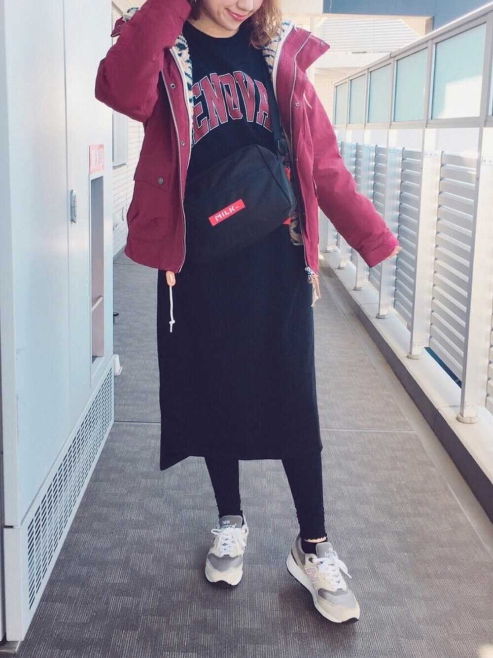 少し前のコーデ❤︎ \ロゴワンピ × マウンテンパーカー/ お気に入りのワンピ🎵 イロチ買いしちゃいました😊💓
