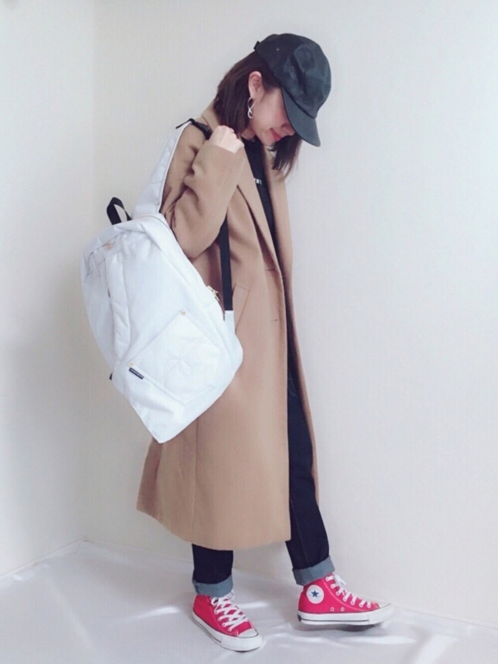 mercibeaucoup,さんのリュック❤︎ チェスターコートにも合います🎵 リュックの正面からも 荷物が取り出せるので楽ちん😊✨ 可愛いだけじゃなく 使いやすいところも素敵👏💓 #PR インスタ▷▷meme158cm
