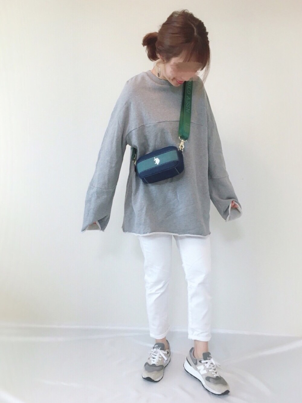 メンズ服を取り入れたコーデ❤︎ シンプルコーデに U.S. POLO ASSN.さんのショルダーバッグが映える😊💓 ホワイトパンツを履くと 春らしくなるねー🌸