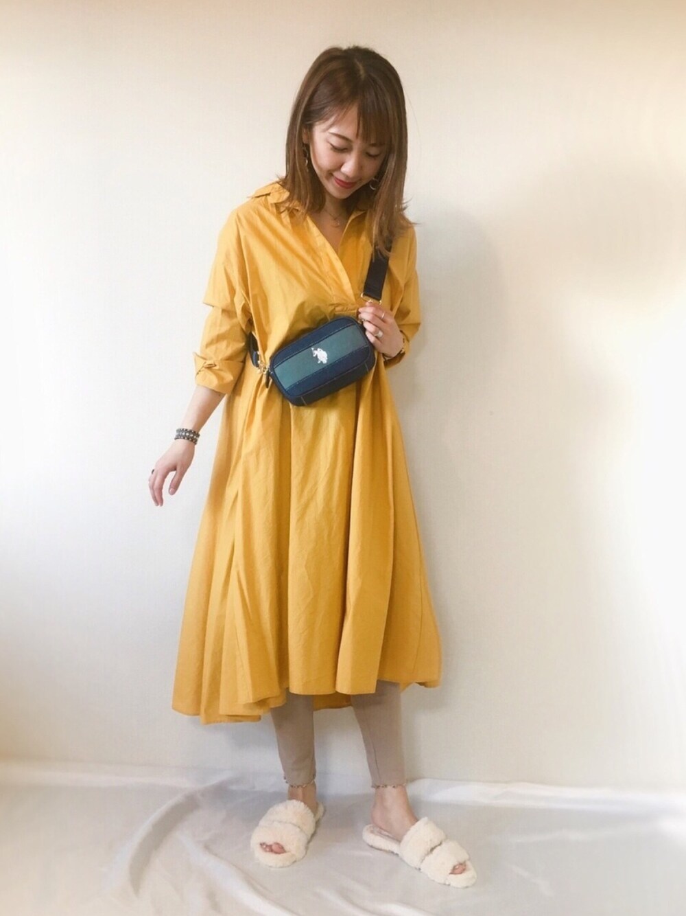 毎年、大事に着てるイエローワンピ🌼 落ち着いたグリーンの入った U.S.POLO ASSN.さんのバッグと 合わせてみました♡ インスタ▷▷▷meme158cm
