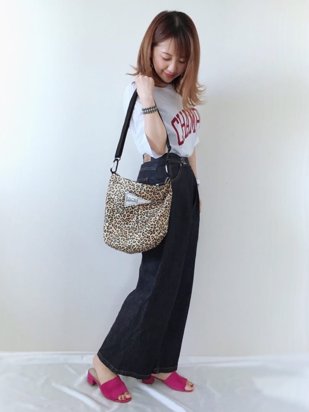 ロコT × デニムパンツ で シンプル❤︎ レオパードと ピンクを ちょい足し💗 インスタ▷▷▷meme158cm プロフからとべます-----✈︎
