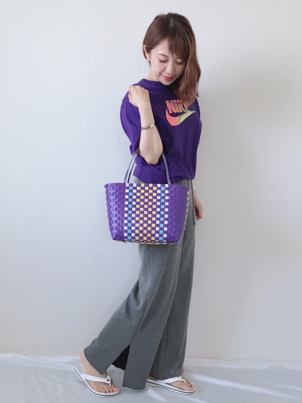 NIKEのメンズTシャツを 折り返して着てます♡ リブパンツと合わせてラフに☺️ インスタ▷▷▷meme158cm プロフからとべます-----✈︎