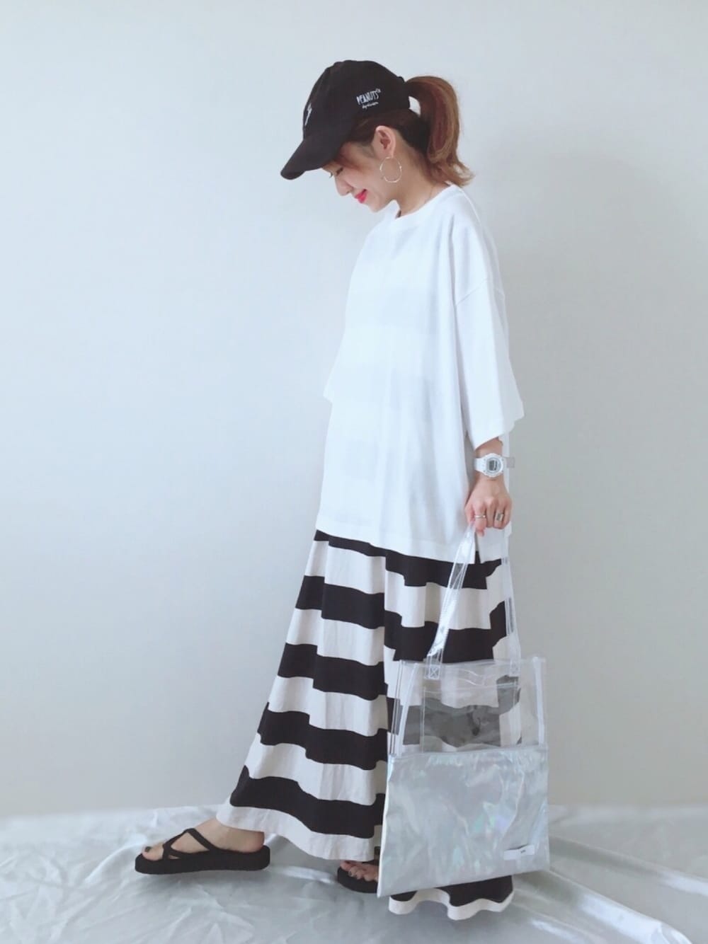 ゆるっ♩だぼっ♩コーデ👻 ワンピースに、メッシュのTシャツを レイヤード😊 夏のモノトーンコーデ🐼 インスタ ▷▷meme158cm PARTE