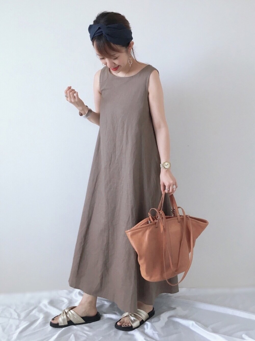 memeのワンピース「フレンチリネンテントワンピース」を使ったコーディネート