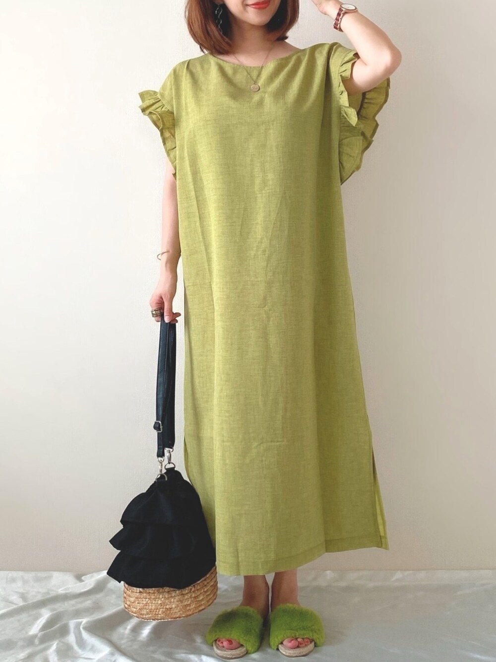 ライムグリーン 🍋🌿 ある日のコーデ𓂅𓂅 ファーサンダルとワンピのカラーをリンク♡ Instagram ▷▷@meme158cm PARTE