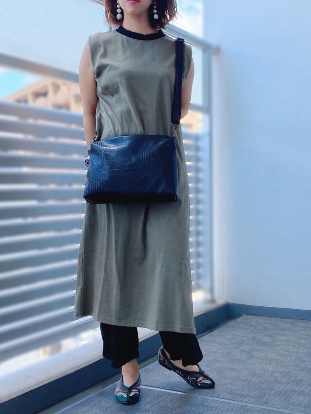 カーキコーデ 🥑🌿🦠 お気に入りのものを詰め込みました♡ カーキとブラックで、秋色を少し意識したよ🌾 【a.n.l 配色衿アシメスリットワンピース 】 AN closetさんのものです♡ スリット入りのIラインワンピ✨ ストンッとしたシルエットがとても綺麗♡ 合わせるボトムスによって雰囲気が変えられるのが嬉しい〜♩ 今回はリブパンツ合わせにしたよ☺️ 靴は VIVIAN COLLECTIONさんのチャイナシューズ🐾💚 刺繍が可愛い〜って家族にも褒めてもらえました♩ とっても歩きやすいよ🕊 Instagram ▷▷@meme158cm PARTE