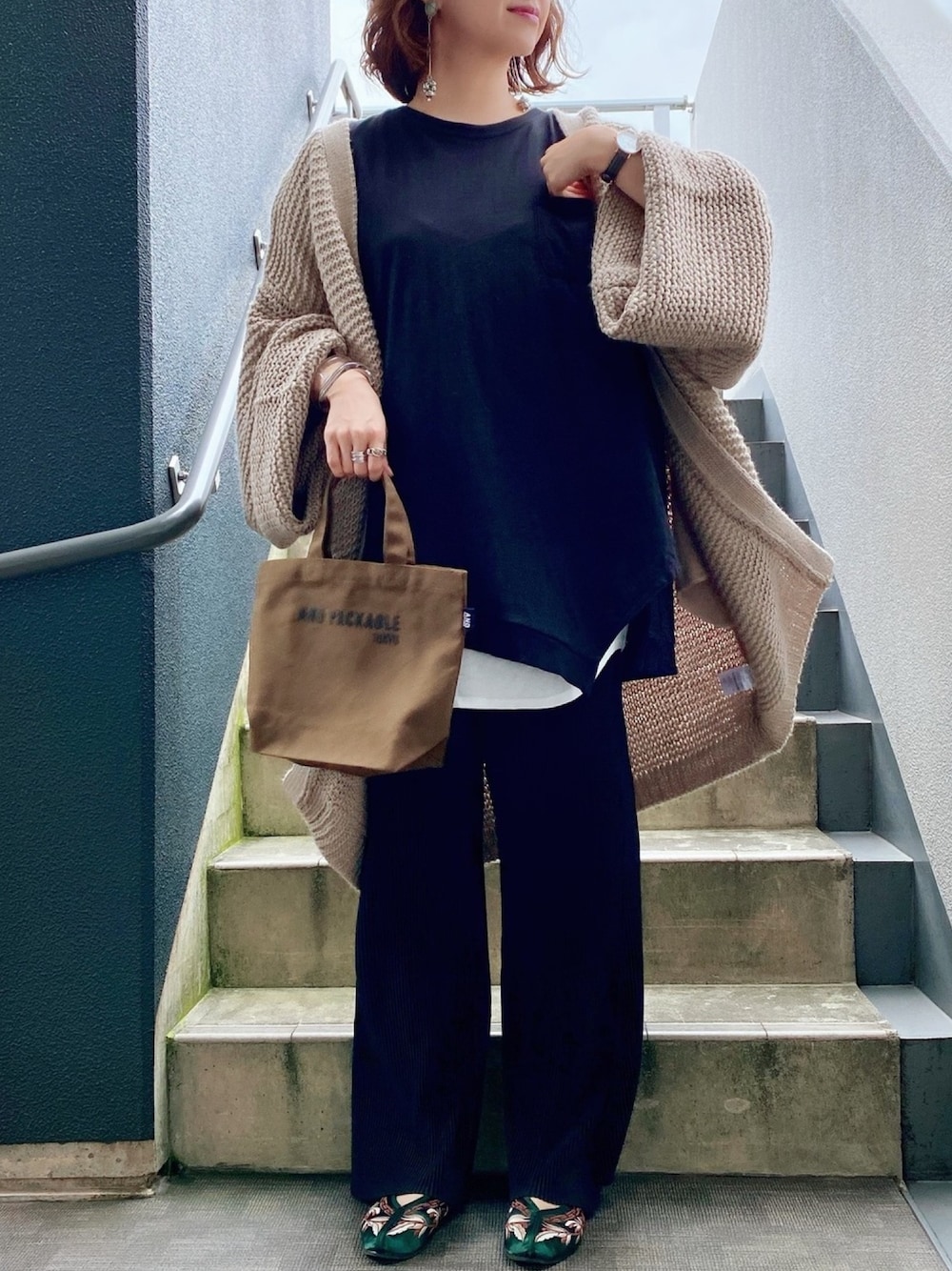 今日のリアル休日コーデ🌿 ざっくりニットカーデに、レイヤードスタイル🤎 Instagram ▷▷@meme158cm PARTE