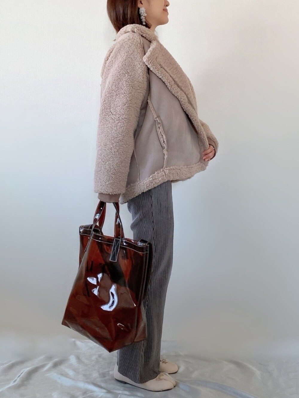memeのムートンコート「ボアジャケット」を使ったコーディネート