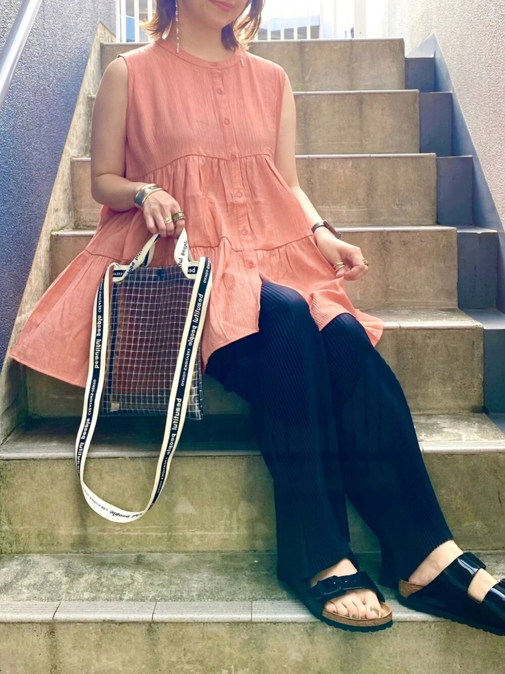 memeのシャツ/ブラウス「楊柳ティアードノースリーブブラウス」を使ったコーディネート